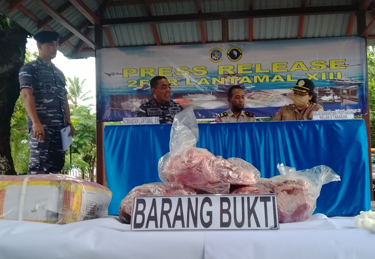 Penyelundupan daging ilegal dengan berat total 380 kg ini, digagalkan Tim Fleet 2 Quick Response Lantamal XIII, sekira pukul 17.00 Wita, pada 23 Mei lalu. Komandan Lantamal XIII Tarakan Laksamana Pertama TNI Fauzi melalui Komandan Satrol Kolonel Laut (P) Sahatro Silaban mengatakan, sepanjang tahun melakukan operasi di wilayah perairan Kaltara.