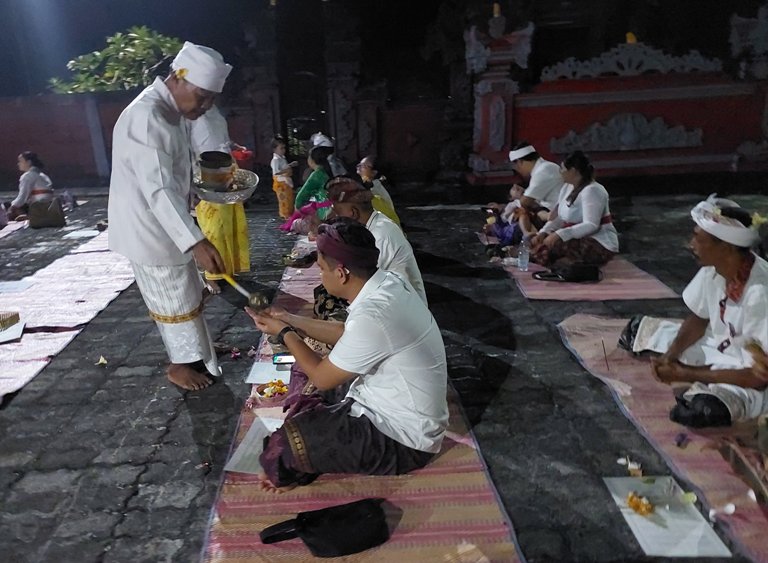 Pensucian diri dilakukan karena dipercaya semua yang hidup pasti ada baik dan buruk, sehingga perlu diperbaiki. Rangkaian selanjutnya persembahyangan bersama. Dengan memohon agar semua kegiatan, makhluk termasuk manusia mendapatkan kebahagiaan dan keharmonisan hidup.