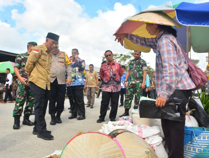 TANJUNG SELOR – Bupati Bulungan Syarwani melakukan inspeksi mendadak (Sidak) di Pasar Induk Tanjung Selor, Kamis (4/4). Bupati sidak bersama Forum Koordinasi Pimpinan Daerah (Forkopimda) Bulungan, untuk memastikan harga kebutuhan bahan pokok tetap stabil dan stok aman jelang Lebaran.