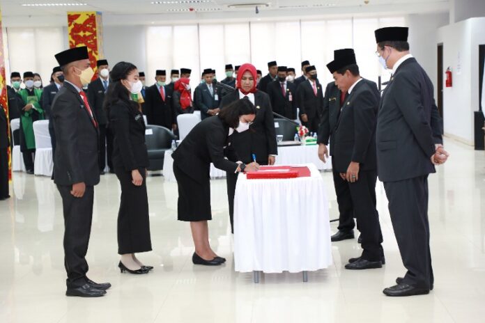 TANJUNG SELOR – Gubernur Kaltara Zainal Arifin Paliwang melantik 1 orang pejabat administrator dan 38 pejabat fungsional di lingkup Pemerintah Provinsi (Pemprov) Kaltara, di Gedung Serbaguna, Senin (26/9).