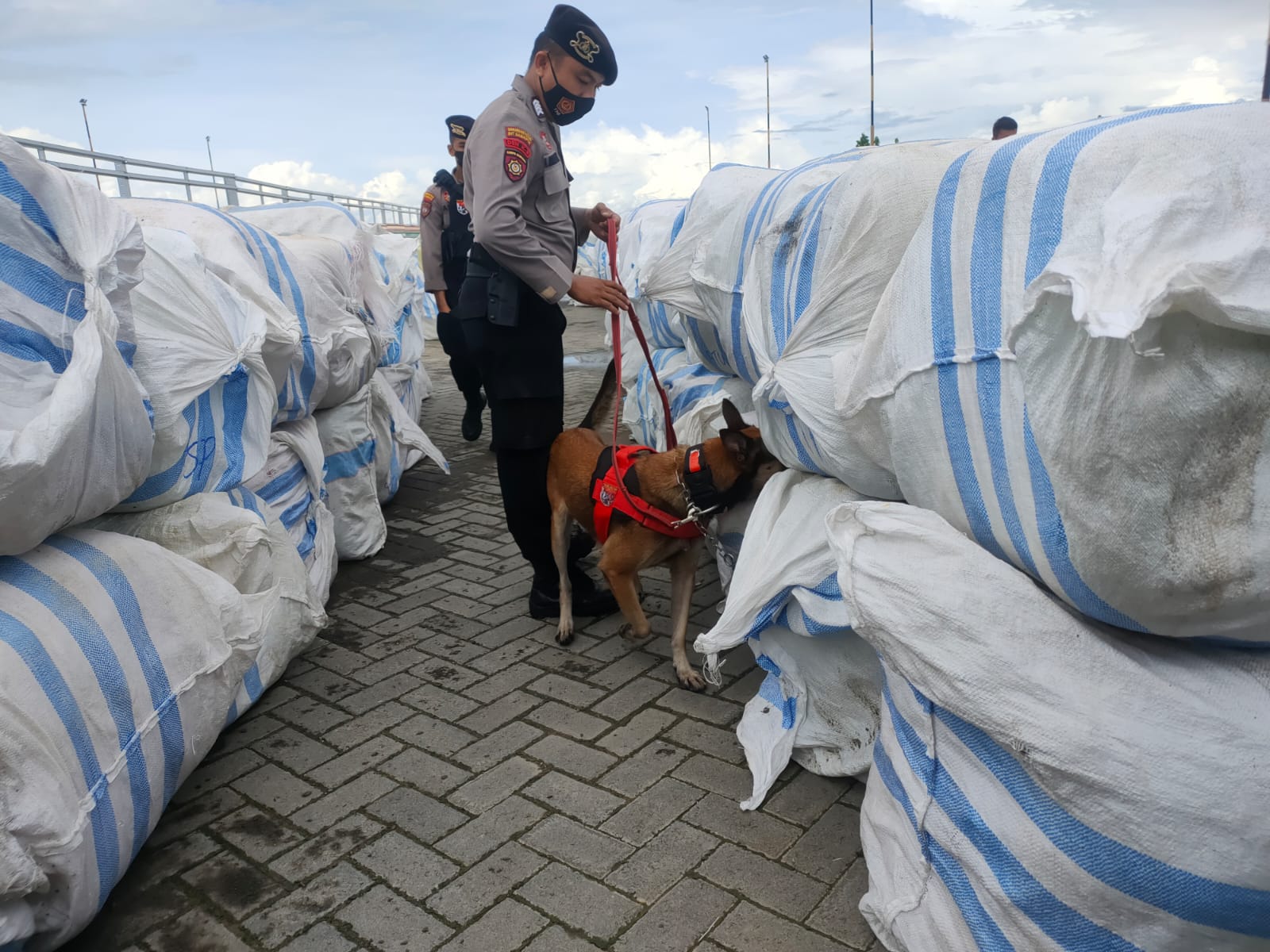 Total sebanyak 1.806 bal diperiksa, dengan dibantu anjing pelacak atau K-9 dari Bea Cukai Tarakan dan Polda Kaltim. Hasilnya, tidak ditemukan narkotika maupun benda mencurigakan lainnya.
