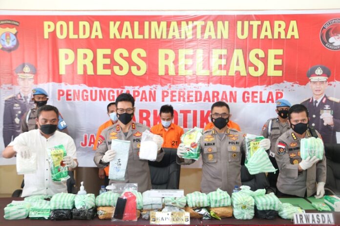 TANJUNG SELOR – Polda Kaltara berhasil menggagalkan upaya penyelundupan narkotika jenis sabu seberat 30,72 kilogram (Kg). Barang haram tersebut dikirim dari Tawau, Malaysia.