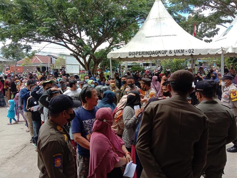 Operasi yang digelar di halaman Kantor Disperindagkop Kaltara, kemarin (15/3), dipadati sejumlah masyarakat. Hingga menimbulkan antrean panjang. Meskipun sempat terjadi kepadatan, namun masyarakat diatur untuk bisa mendapatkan minyak goreng.