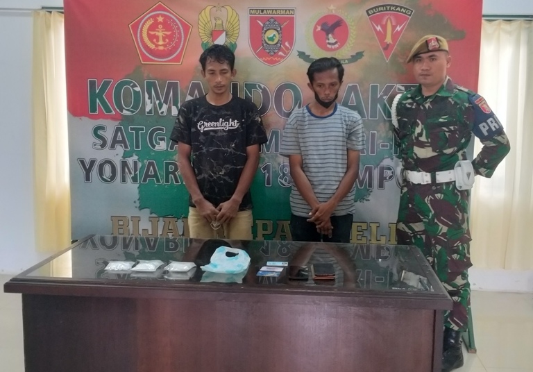 NUNUKAN – Satgas Pamtas RI–Malaysia Yonarmed 18/Komposit Buritkang mengamankan dua laki laki berinisial KN (37) dan AG (36), yang merupakan warga Pulau Sebatik, Kabupaten Nunukan, Selasa (22/2).