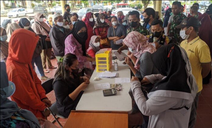 Adanya pasar murah itupun dimanfaatkan masyarakat, yang digelar di Jalan Agatish Tanjung Selor, Senin (25/4).