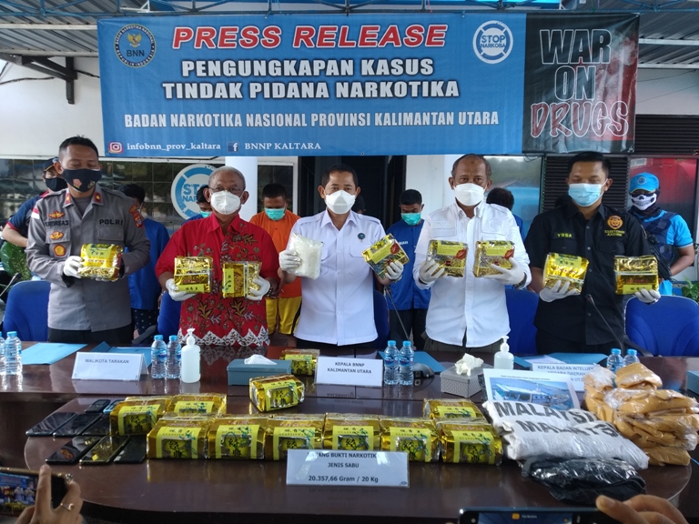 Untuk diketahui, tujuh terdakwa dalam kasus ini, yakni Bahar (36) merupakan juragan kapal Tiga Putri 10 yang membawa sabu. Enam orang lainnya, yakni RB (24), PR (27), NR (21), MH (40), SH (36) dan LM (42) merupakan ABK. Semuanya warga Tolitoli, Sulawesi Tengah yang tertangkap Badan Narkotika Nasional Provinsi (BNNP) Kaltara, 21 Mei 2021. Di wilayah perairan Mangkupadi, Kabupaten Bulungan perbatasan Kaltim dan Kaltara. (kn-2)