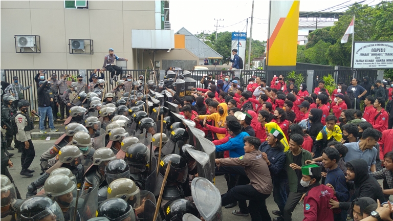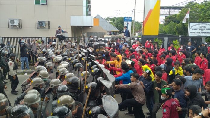 Pantauan media ini, aksi dorong-dorongan antar aparat kepolisian dan mahasiswa pun tidak bisa dihindarkan. Mahasiswa mendorong aparat kepolisian, agar bisa masuk ke halaman Kantor DPRD Tarakan. Mesti akhirnya massa terpaksa mengalah dan tidak dapat menemui anggota DPRD Tarakan, untuk melakukan audiensi.