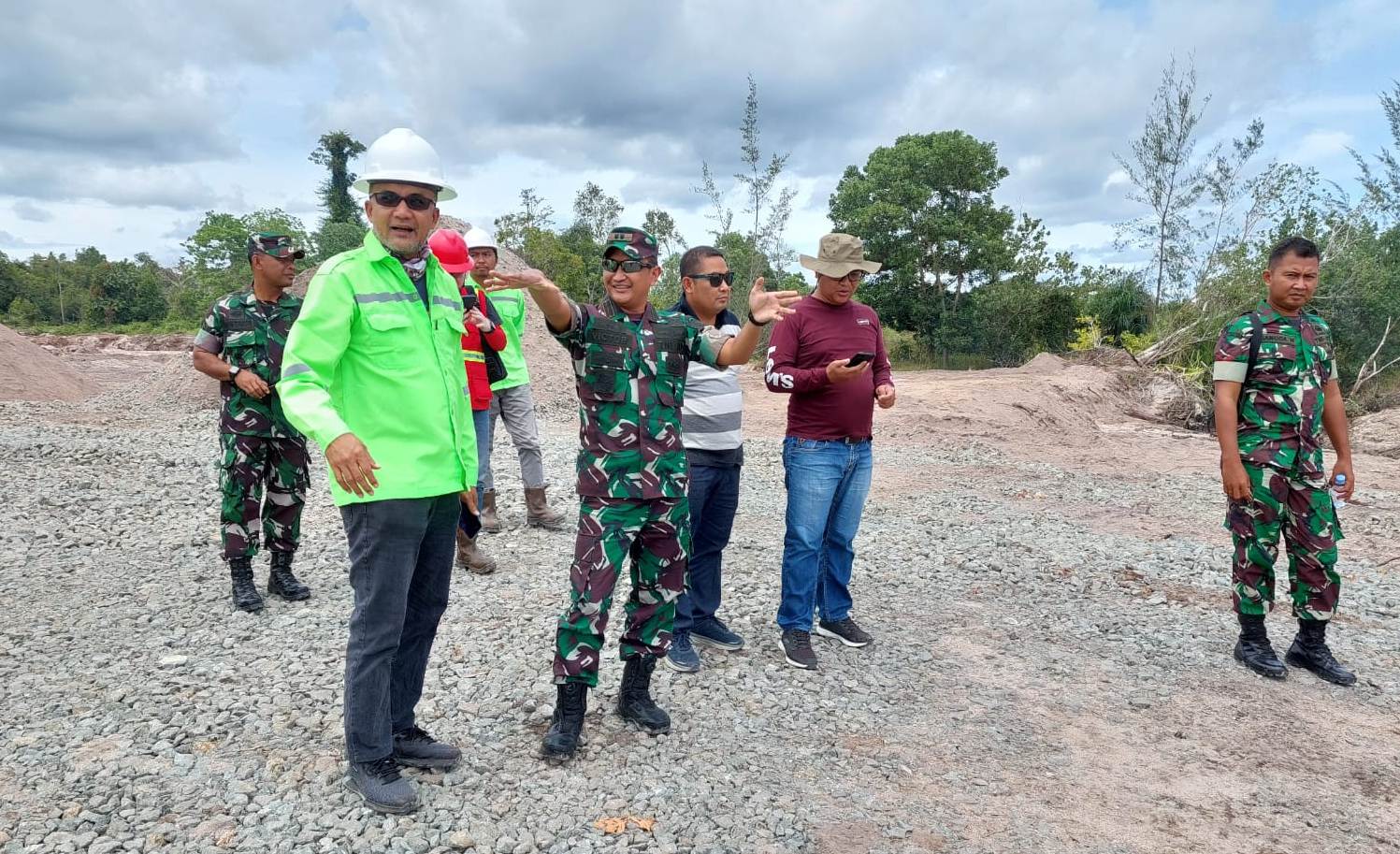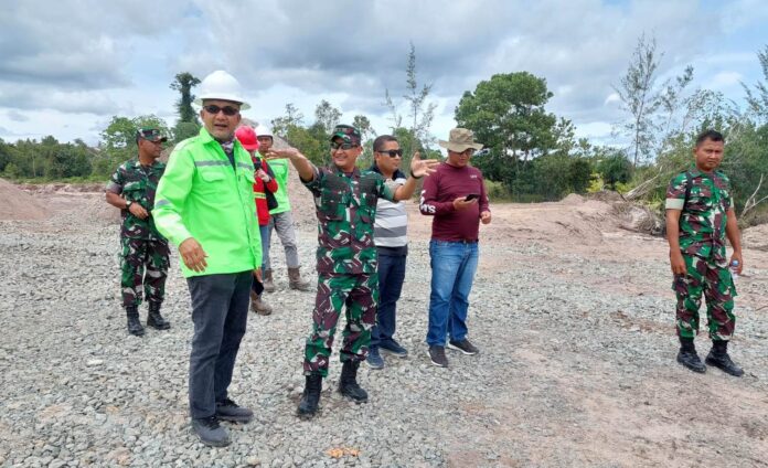 TANJUNG SELOR – Komandan Kodim 0903/Bulungan Letnan Kolonel (Letkol) Inf Victor Andhyka Tjokro meninjau lokasi pembangunan Kawasan Industri Hijau Indonesia (KIHI) Tanah Kuning-Mangkupadi, Kecamatan Tanjung Palas Timur, bersama perwakilan PT Kalimantan Industrial Park Indonesia (KIPI).