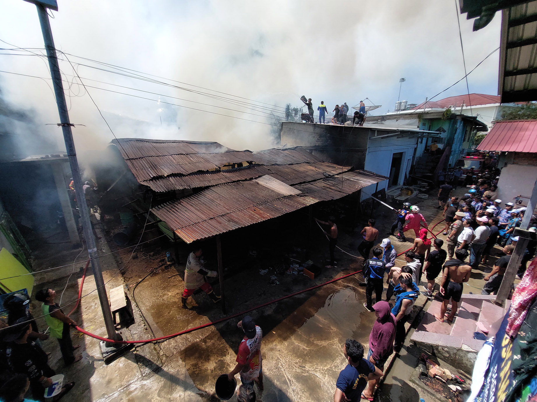 “Kami tadi sempat kehabisan suplai air, tapi cepat kembali datang. Pemilik rumah itu Nur Sahdiansyah, Rusli korban luka dan sudah dibawa ke rumah sakit. Ada juga ibu lansia, Nenek Ain. Sementara dua rumah yang terdampak Jamhari dan Alwi,” sebutnya.