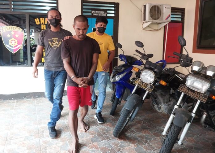 Modus kejahatan yang dilakukan pria berusia 30 tahun itu, memastikan situasi sekitar indekos dalam keadaan sepi. Melihat pintu tidak terkunci, MI langsung masuk ke kamar korban dan mengambil satu unit handphone. “Jadi pintu kos-kosan korban tidak dikunci. Sehingga memudahkan MI masuk melalui pintu depan,” tuturnya.