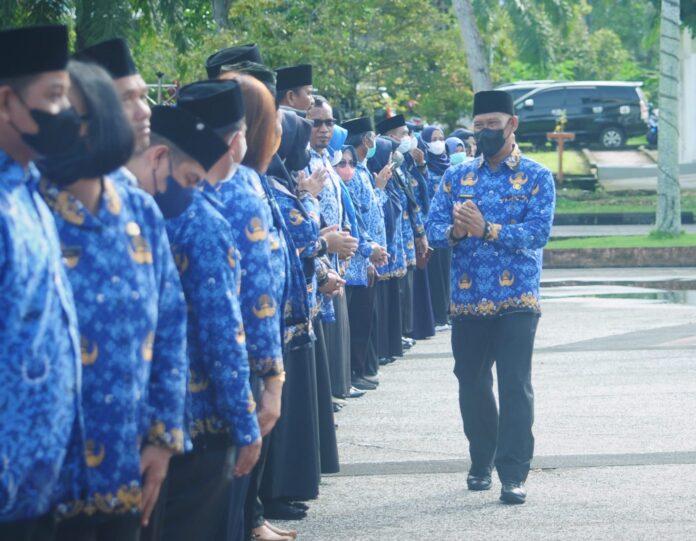 Meskipun Covid bisa dikendalikan, bukan berarti boleh lengah dan melupakan protokol kesehatan. Usai upacara peringatan Hari Kesehatan Nasional, Bupati bersama Wakil Bupati Ingkong Ala melaksanakan rapat bersama Satuan Tugas (Satgas) Penanganan Covid-19, di ruang rapat Bupati Bulungan.
