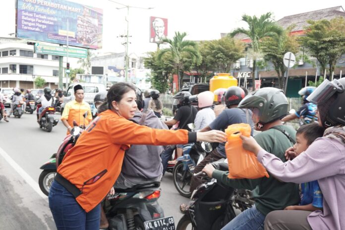 TARAKAN, kaltaranetwork.com – Kegiatan sosial di bulan Ramadan turut diadakan oleh Pengurus Daerah Kolektif (PDK) Kesatuan Organisasi Serbaguna Gotong Royong (Kosgoro) 1957 Kaltara. Aksi sosial ini dikemas dalam bentuk pembagian kotak takjil untuk menu berbuka puasa di Simpang Empat Kota Tarakan, Selasa (28/3/2023).