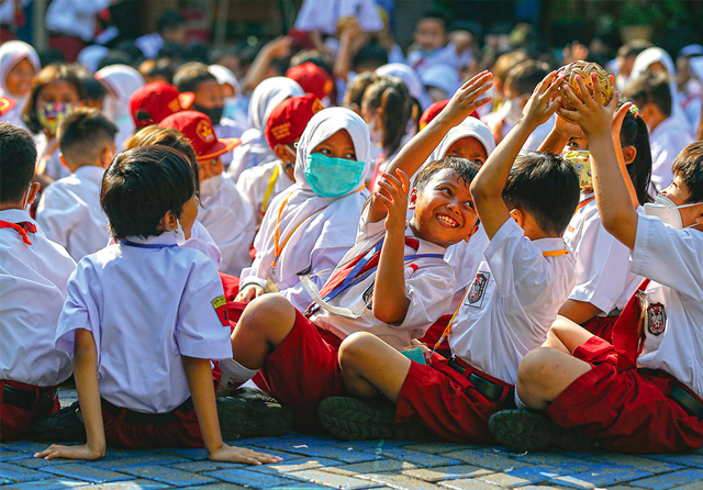 Di tempat lain, SD Muhammadiyah 18 punya cara yang berbeda. Para siswa melakukan aksi simbolis sebagai bentuk kritik kepada lembaga pendidikan agar melindungi hak anak dan bebas dari segala bentuk kekerasan.