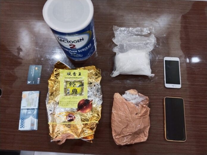Dalam kasus ini, sejumlah barang bukti yang diamankan meliputi satu bungkus sabu seberat 500 gram, masing-masing 1 kaleng susu Lactogen 2, teh kemasan the China merk Guan Yin Wang, handphone merk Redmi, ATM BNI, uang tunai Rp 1 juta, handphone Iphone 7, sepeda motor Honda Scoopy, speedboat dengan mesin Yamaha 40 PK. (kn-2)