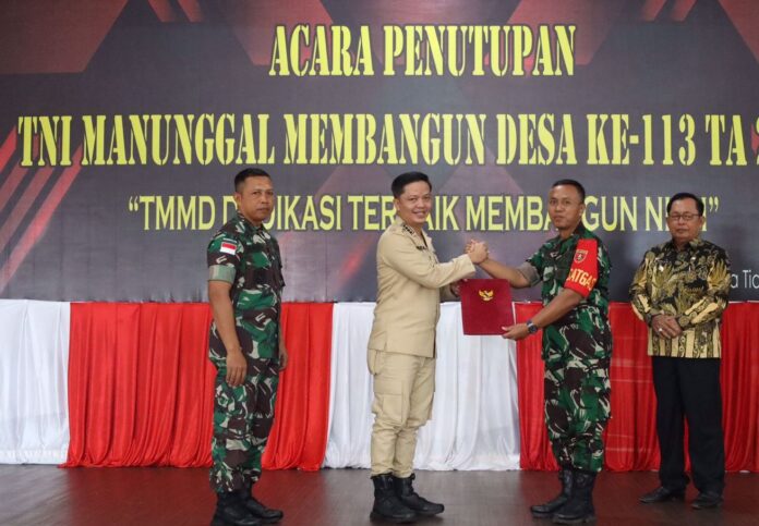 TIDENG PALE – Pelaksanaan TNI Manunggal Membangun Desa (TMMD) ke 113, di wilayah Kodim 0914/Tana Tidung mengambil tema ”TMMD Dedikasi Terbaik Membangun NKRI”, telah berakhir.