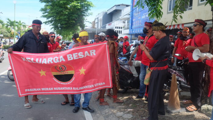 TARAKAN – Mako Polres Tarakan didatangi sejumlah massa, Sabtu (8/4) lalu. Kali ini ratusan massa yang tergabung dalam Pasukan Merah Nusantara menuntut beragam penyampaian.