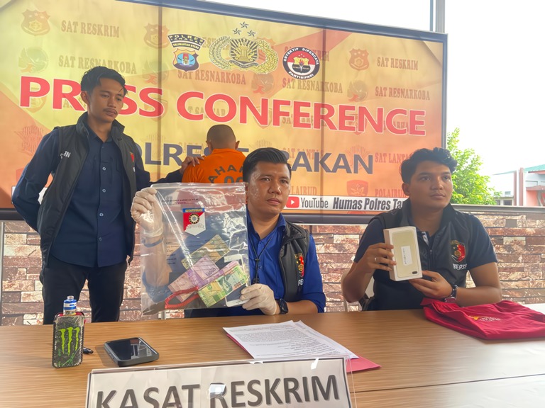 Dari hasil penyelidikan melalui rekaman CCTV, Unit Resmob Satreskrim Polres Tarakan mendapati ciri-ciri dan identitas tersangka. Akhirnya tersangka diamankan saat sedang nongkrong di rumah kerabatnya di Jalan KH Agus Salim, Kelurahan Selumit, Tarakan Tengah sekitar pukul 14.00 Wita dihari yang sama.